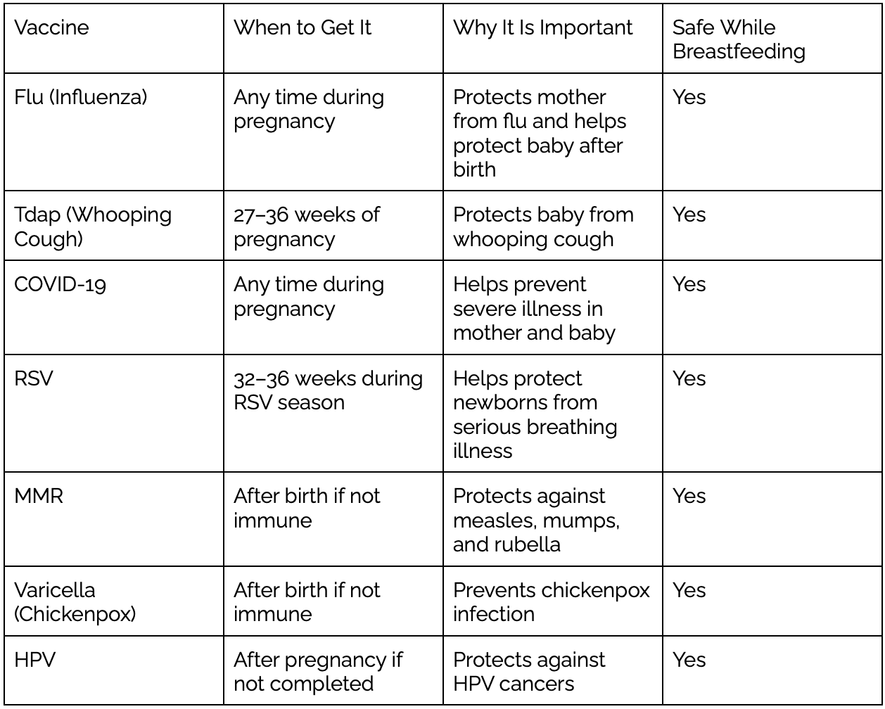 Suggested Pregnancy vaccine table